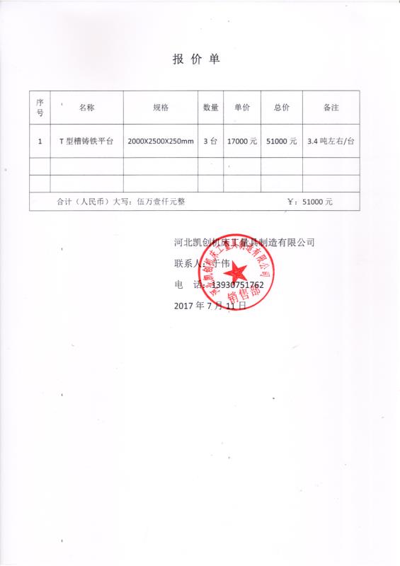 凱創(chuàng)T型槽鑄鐵平臺的報價單