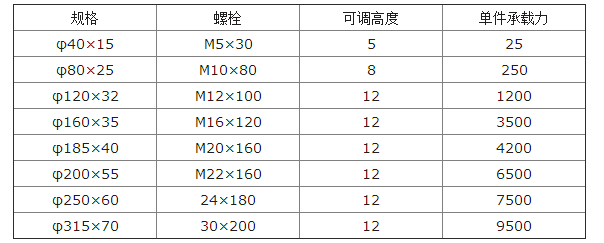 減震墊鐵的規(guī)格: