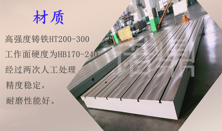 鑄鐵平臺的鑄鐵質量和熱處理質量對平板使用性能產生較大影響:或因殘存較大內應力使工作面變形;或因不耐磨損使精度不能保持;或因刮削困難得不到數值小的粗糙度.因此使用鑄鐵平板 注意鑄鐵材料的選擇,采用時效處理等方法消除鑄鐵平板的殘余應力. 鑄鐵平臺的誤差:在平板的制造和修理過程中,由于材質的硬度和均勻性、溫度變化、刮制技術、合研的穩定性、研磨力的分布以及研磨劑的質量和其他因素的影響,都會使平板產生局部誤差. 三面互研法,不僅是平板傳統的加工方法,而且也是平板常用的檢驗方法.
