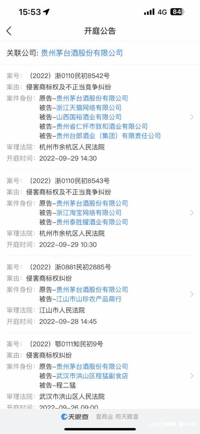 天眼查顯示,2月4日,中國(guó)貴州茅臺(tái)酒廠(集團(tuán))有限責(zé)任公司新增一則開庭公告,被告為上海尋夢(mèng)信息技術(shù)有限公司和另外兩家酒廠,案由為侵害商標(biāo)權(quán)糾紛,上海市徐匯區(qū)人民法院定于2月20日在開庭,經(jīng)核實(shí),上海尋夢(mèng)信息技術(shù)有限公司系團(tuán)購電商平臺(tái)拼多多所屬公司。